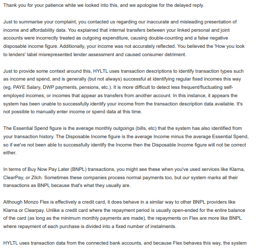 ClearScore acknowledged the dispute and responded within its standard process framework. However, the substance of the response did not resolve the underlying inaccuracies.